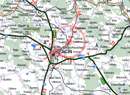 Mapa Valdice a okolí